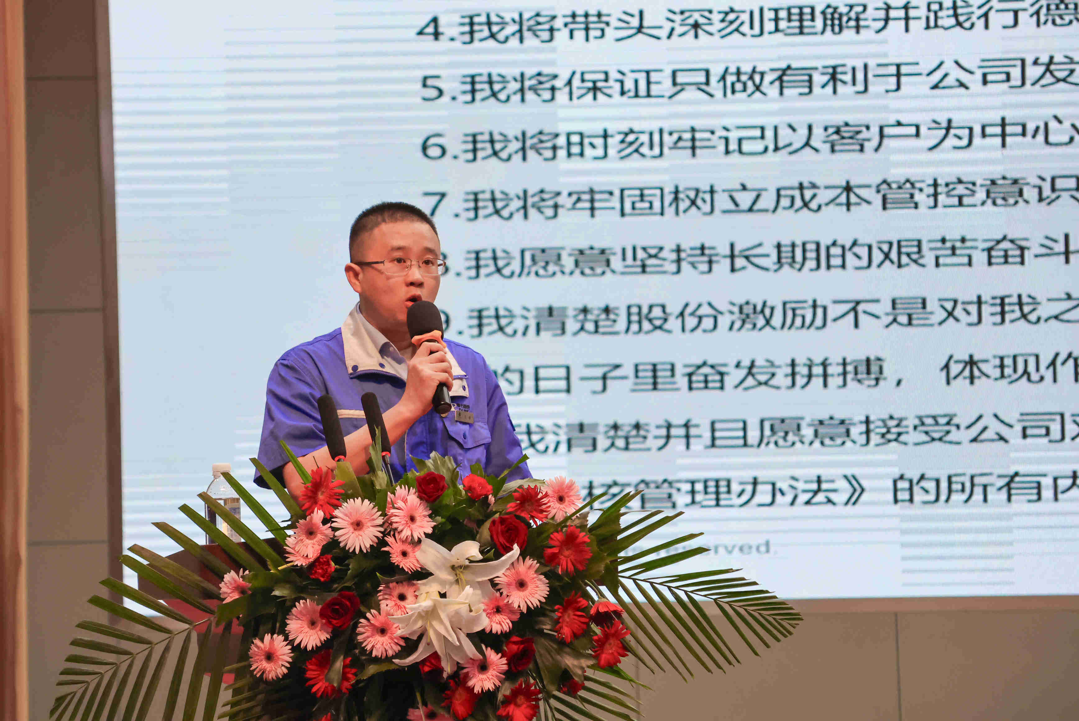 Затем насцену вышел представитель акционеров компании г-н Ван Фэн, который торжественнопринес клятву от имени всех акционеров. Клятва была короткой, но каждое словоимело огромный вес. Это клятва несет в себе твердое обязательство «дышать однимвоздухом и идти вперед вместе» с компанией, взять на себя ответственность засвою должность, команду и развитие, действовать в единстве с компанией исовместно нести тяжелую ношу.